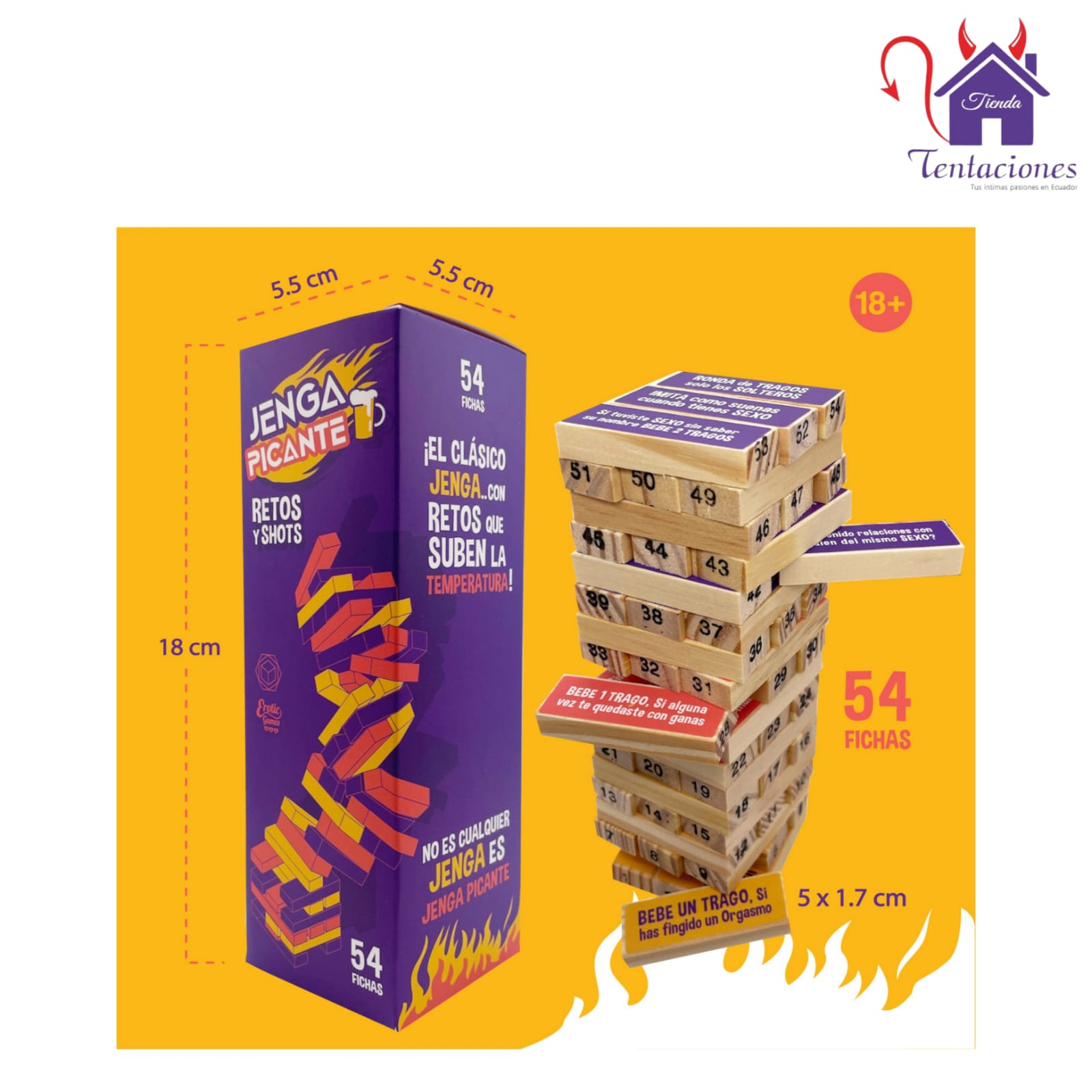¡El juego que todos estaban esperando ha llegado! Prepárate para subir la temperatura con el nuevo Jenga Picante. Más que un juego… es una invitación al placer, la risa y la complicidad. ¡El clásico juego de torre, ahora con un giro atrevido y divertido!